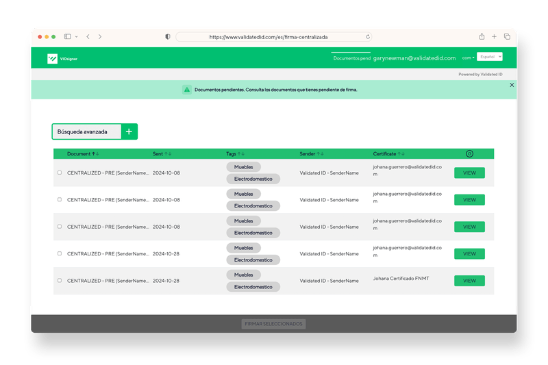 La firma centralizada está especialmente diseñada para los usuarios internos de la empresa que necesitan firmar desde cualquier dispositivo un gran número de documentos mediante un certificado digital.